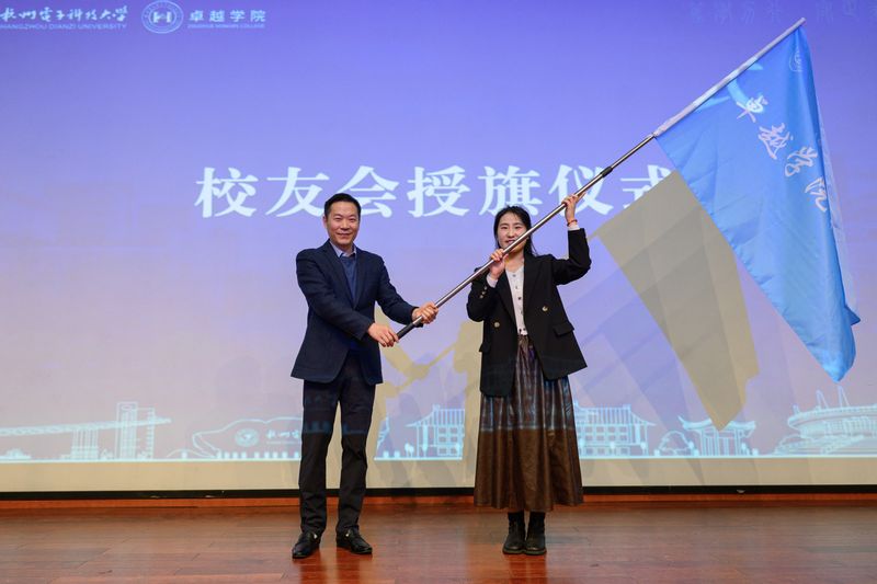 校友大会上,陈云代表学校致辞,并向校友代表授旗。致辞中,他对卓越学院召开第一次校友大会表示祝贺,对各位校友的到来表示欢迎,希望卓越学院的历届校友能够以杭电实干精神深耕行业,助力院校发展,让“梦想卓越、追求卓越、实现卓越”的文化基因代代相传。
