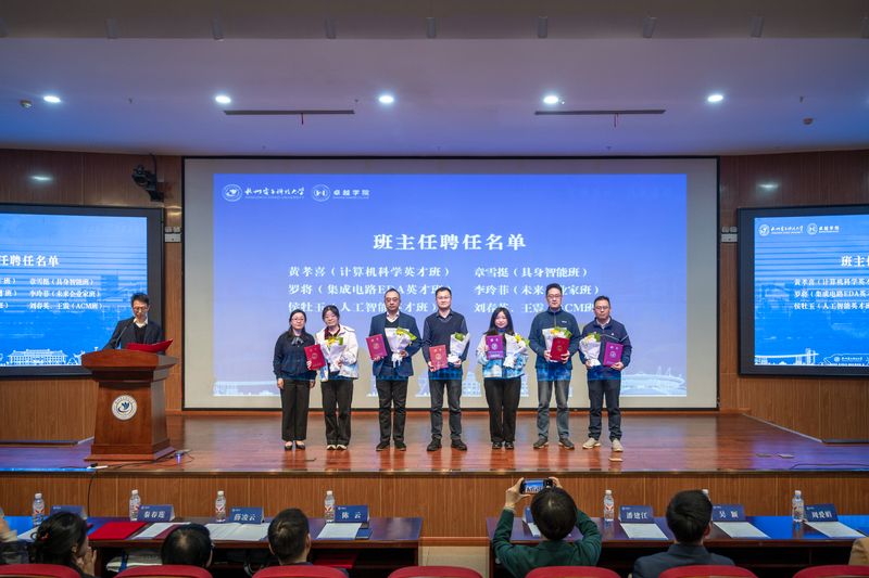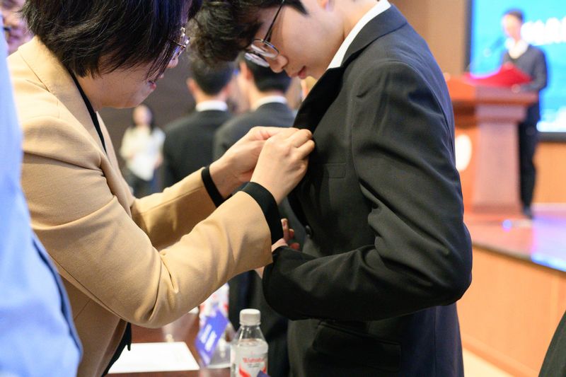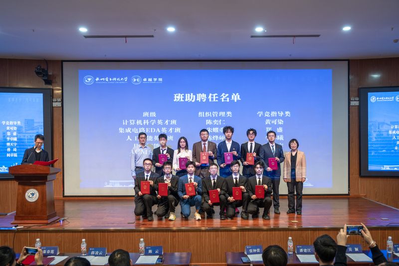 开学典礼上,与会领导嘉宾为新生代表佩戴卓越学院院徽,并勉励新生树立追求卓越的目标,积极参加科研竞赛,提升创新实践能力,奋发有为,砥砺前行。