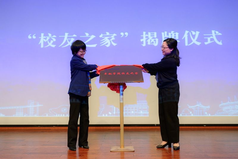 卓越学院党委书记、院长薛凌云与校教务处副处长兼卓越学院副院长应娜为学院校友之家揭牌。